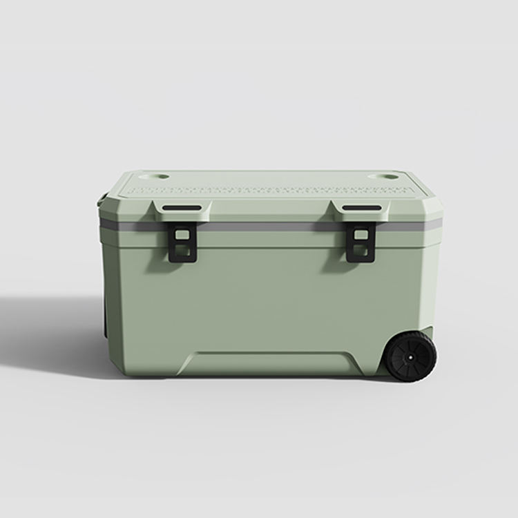 صندوق من البلاستيك سعة 50 لتر معزول بعجلات كبيرة ومبرد محمول صندوق تبريد صلب للاحتفاظ بالجليد مع عجلات ومقبض للخدمة الشاقة